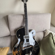 Hola, de 2017 en estado MINT. Es básicamente una Black Falcon con pastillas TV Jones y algún detalle más. Lo mas parecido que hay en catálogo Gretsch actual es la Rich Robinson Black Falcon Magpie. Se toca y suena maravillosamente, ajuste per...2600€SkywalkerMadridhace 4 semanas