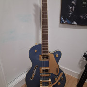 En excelente estado. La vendo por acumulación de material. Comprada en diciembre 2019 Hecha en KOREA. Es la que tiene los pines para que no se mueva el puente al cambiar las cuerdas. Edición limitada. MEJORADA CON PASTILLAS DE LA WHITE FALCON y...1200€peponlasMadridel 26/01/2025