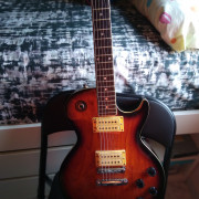 Guitarra eléctrica con un diseño clásico inspirado en el estilo Les Paul. Su acabado degradado le da un toque único. - Cuerpo con acabado sunburst y detalles desgastados. - Mástil de madera oscura con marcadores de posición. - Dos pastillas humb...300€misterefeMadridel 12/11/2025
