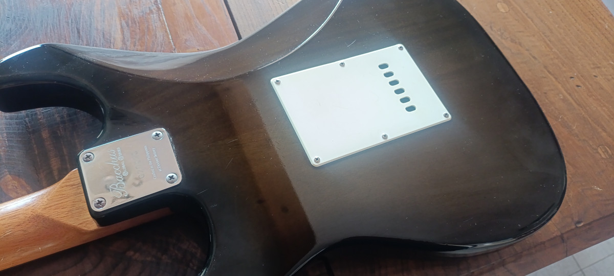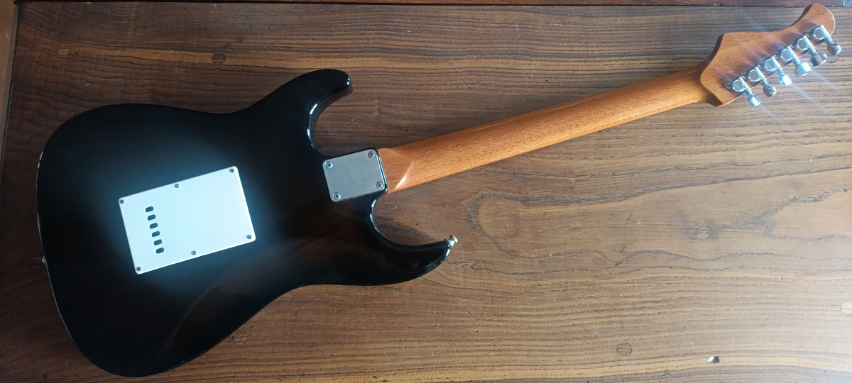 Vendo esta superstrato que sólo se encuentra en el mercado japonés. Toda en caoba con diapasón de palorrosa, comodísima y con buen sonido. Tiene un par de pequeñas marcas en el cuerpo y en la parte de atrás del mástil, pero por lo demás está en perfecto estado, con los trastes intactos y el mástil totalmente recto. Toda original. Me vino ya sin el brazo del trémolo.