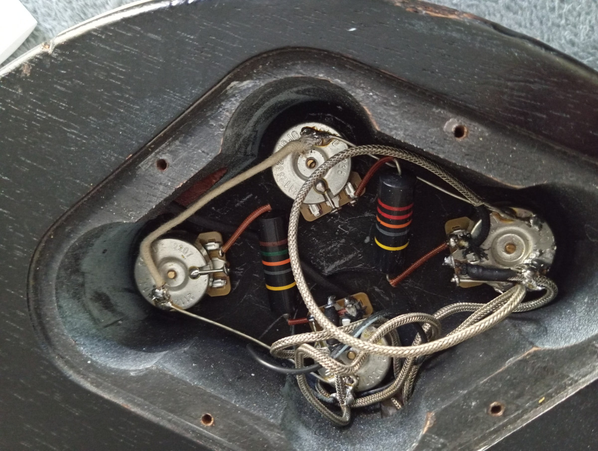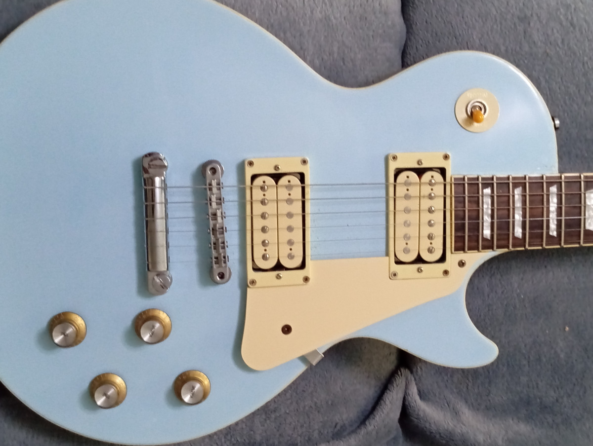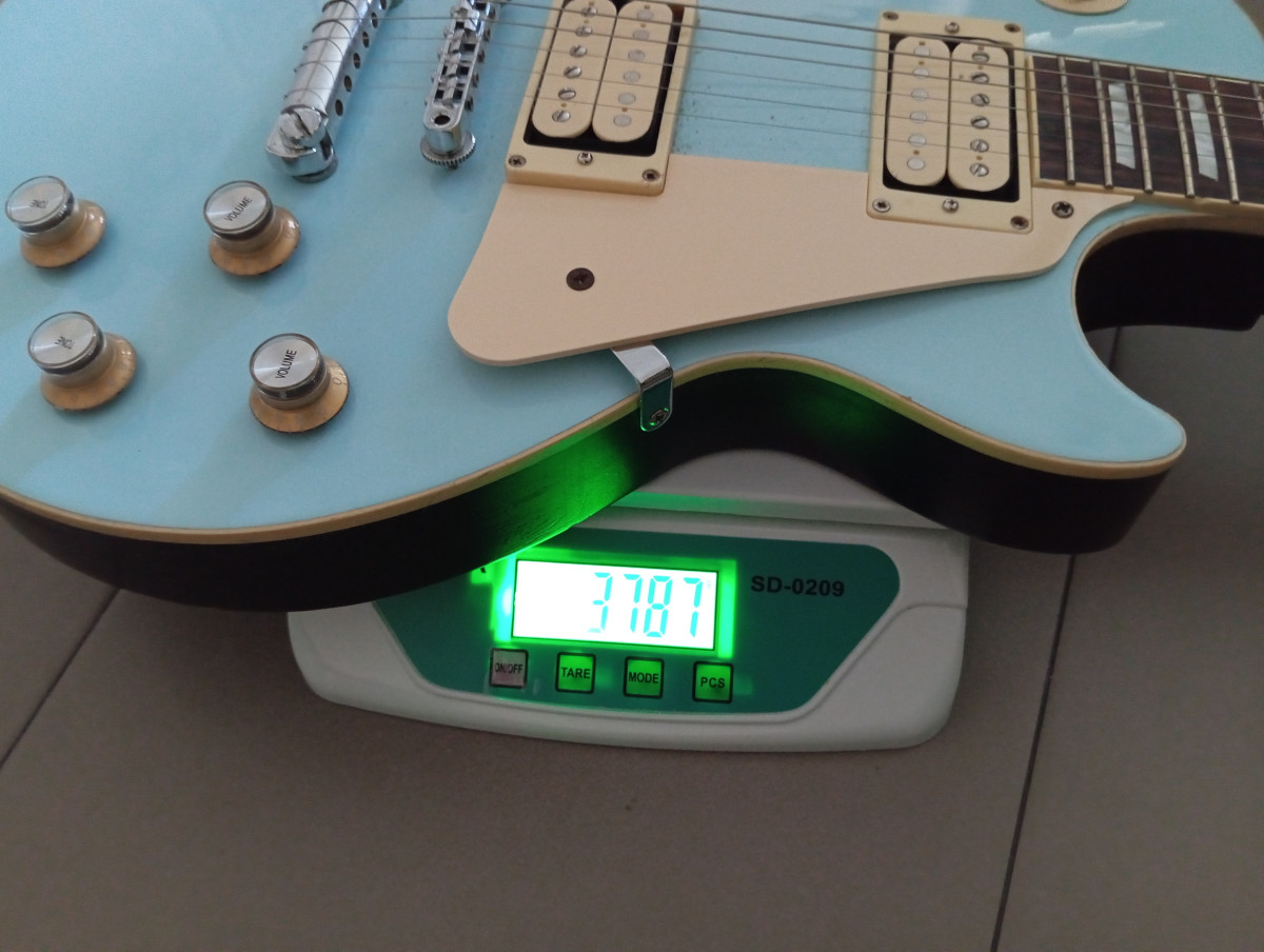 La tapa pintada en Sonic Blue (Nitro).De serie venía acabado en aceite toda ella.Por eso en muchas partes negras se ve la madera, por el desgaste del uso..Mas de 400 euros en mejoras.Electronica Mojotone Premium Historic.Pastillas B&B. Late 50 bobinadas a mano.Puente Gotoh.Peso 3,7Kg.Va con funda genérica .