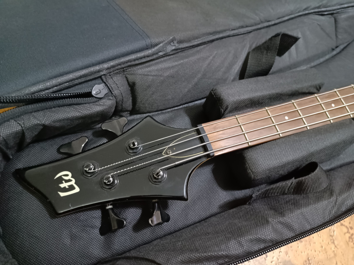 Bajo eléctrico activo LTD B-154 color verde. En buen estado de conservación y perfecto de funcionamiento, las marcas de uso se incluyen en las fotografías que añadí tras las imágenes de la funda.