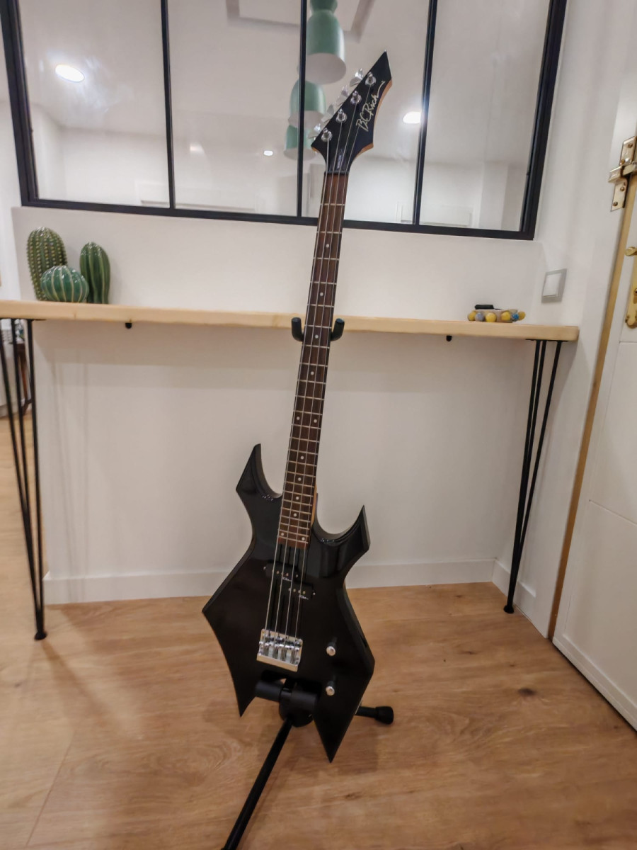 Bajo eléctrico BC Rich Warlock en color negro, en estado impecable, con flightcase funda rígida Rockcase. Prácticamente nuevo. no ha salido nunca de casa donde lleva guardado ni se sabe el tiempo. Uso casi inexistente, sin marcas ni desgaste. Incluye funda rígida Rock Case tipo slide case, resistente y segura para transportarlo.