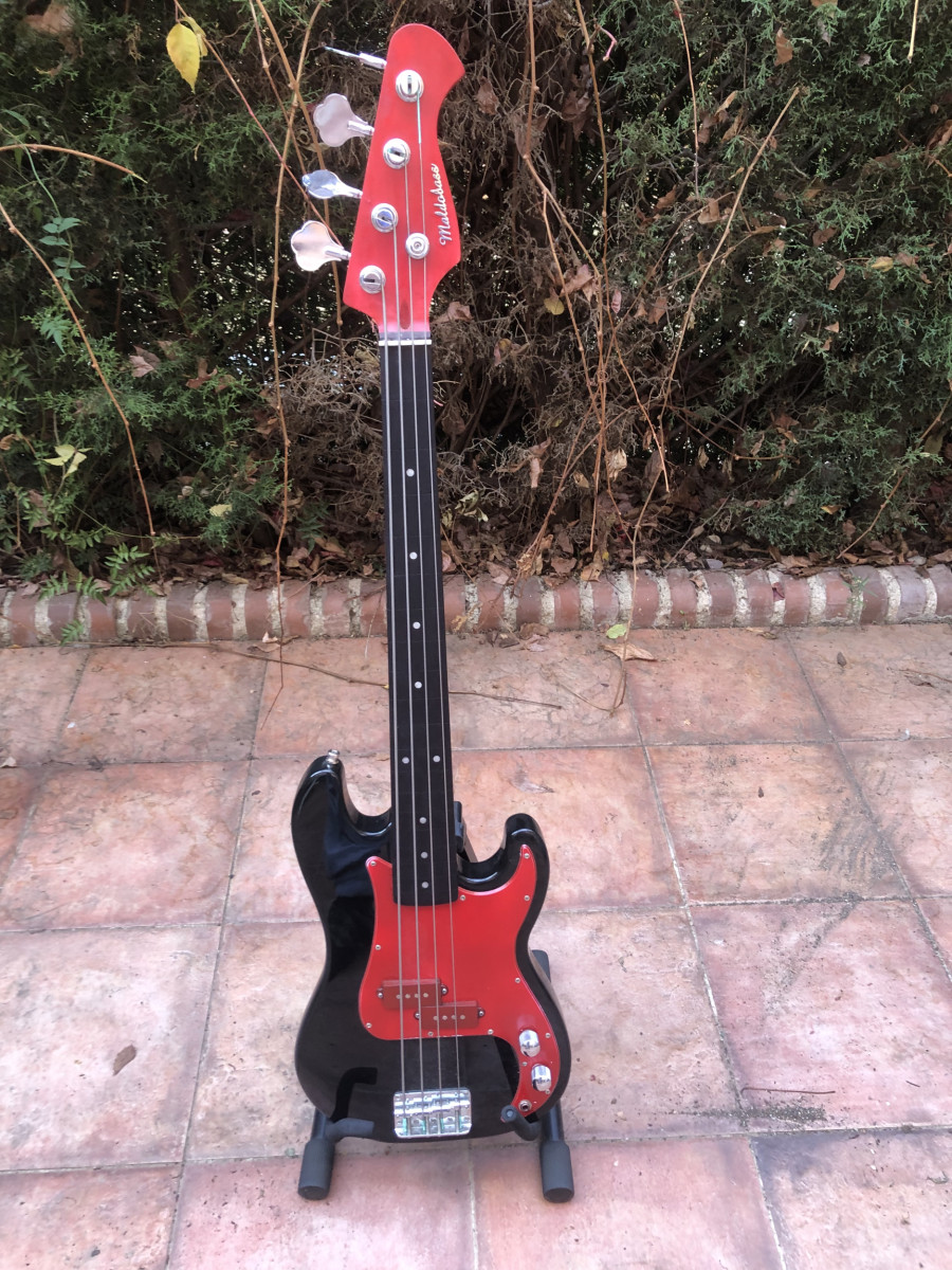 Bajo eléctrico sin trastes (fretless) de escala corta. Ideal para explorar nuevas sonoridades.