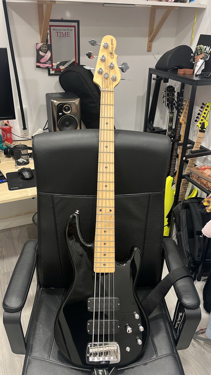 Bajo G&L de 5 cuerdas con previo activo. Controles de volumen, ecualizador de tres bandas y selector de pastillas. No ha salido de mi habitacion. Electronica recien revisada por luthier.