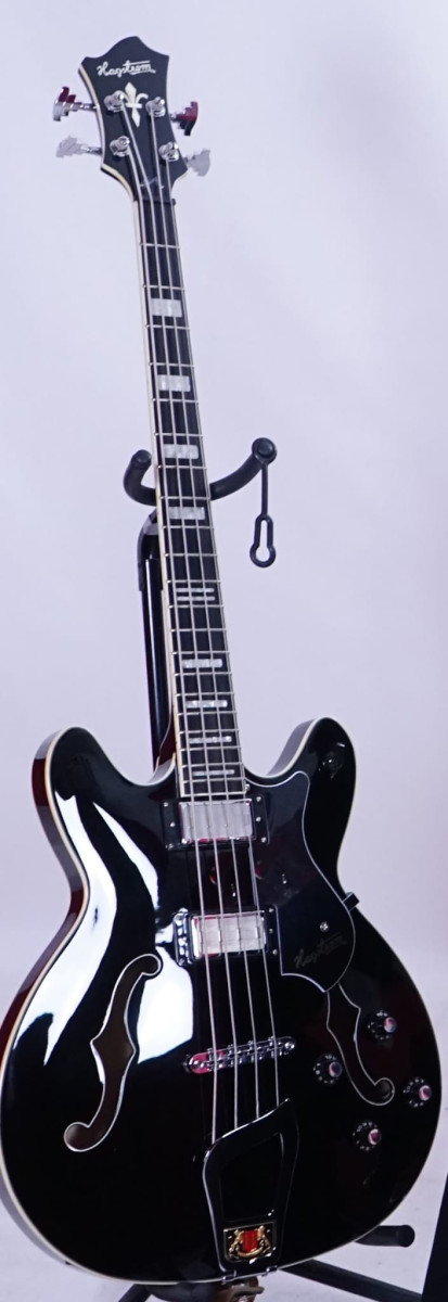 Bajo eléctrico Hagstrom Viking de color negro de escala corta (30.75' - 781 mm). Está en excelentes condiciones y con selector mejorado en bacalita reforzada.