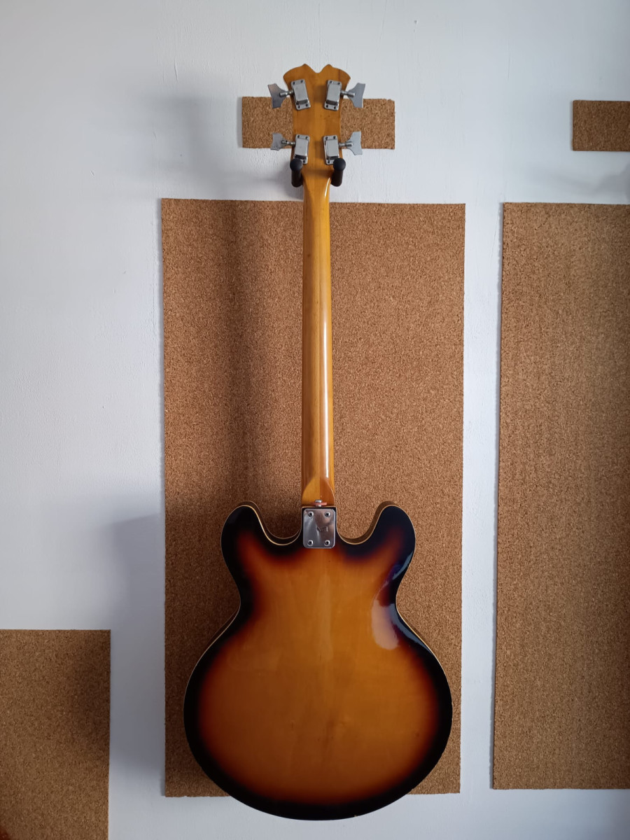 Bajo completamente hueco y con un sonido muy al estilo de los hofner de época.