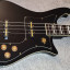 Bajo eléctrico Nidhogg de Baum guitars, de color negro brillante con detalles dorados.