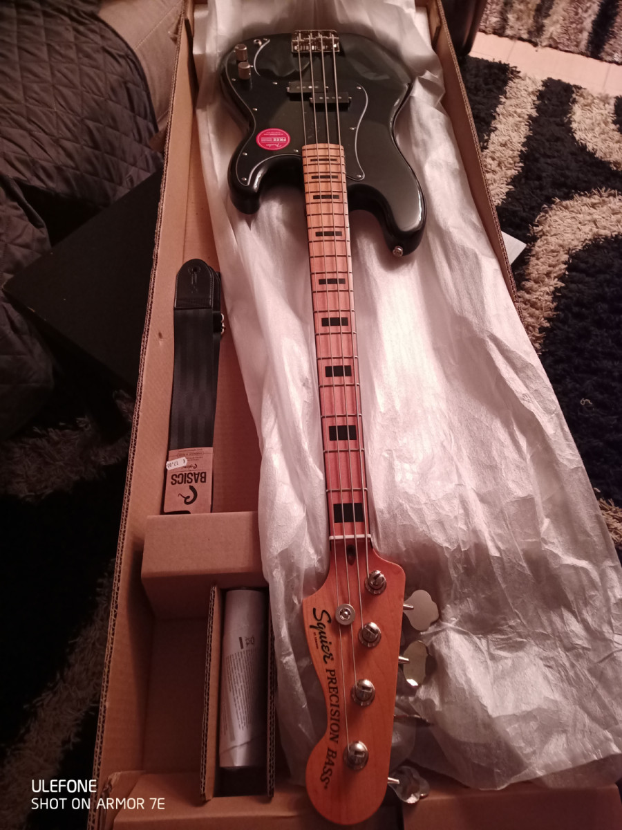 Bajo eléctrico Squier Classic Vibe 70s Precision Bass, acabado en negro.