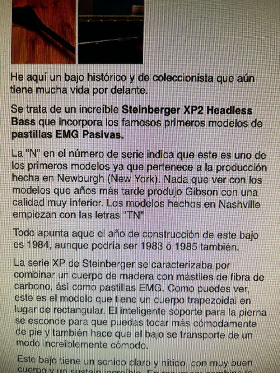 Este anuncio "Bajo Steinberger XP2 Headless Bass" está clasificado en la categoría Bajos.