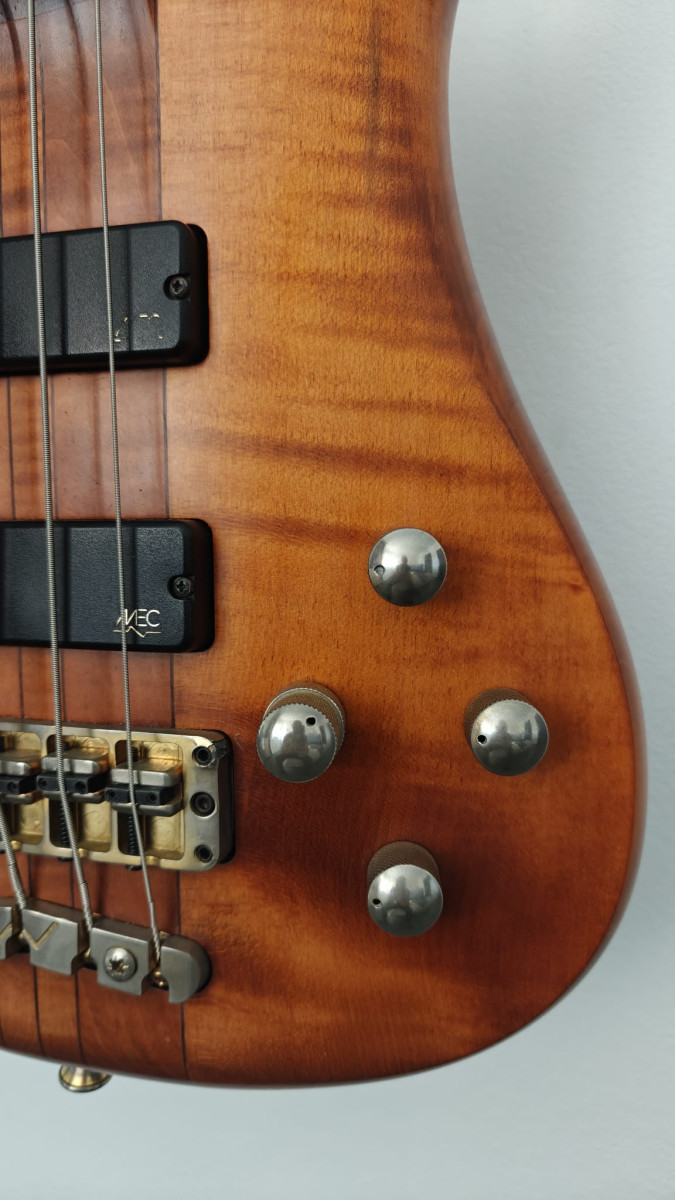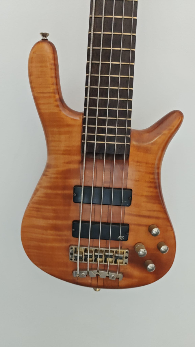 Fabricado en Alemania, año 2001, cinco cuerdas, construcción throug-neck, pastillas MEC, previo activo tres bandas. Honey Violin Oil finish. Flamed Maple AA body. Flamed Maple neck. Gold hardware.