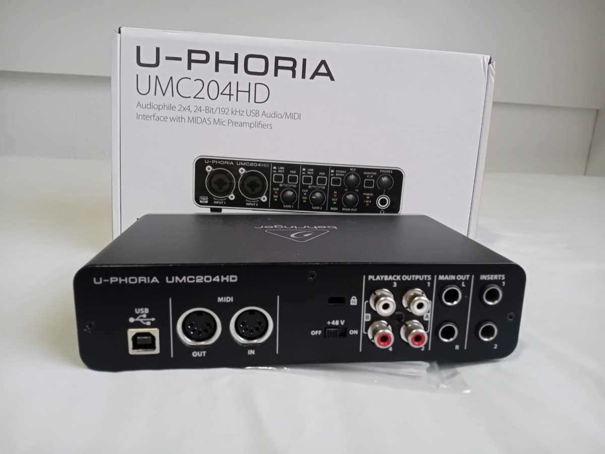 Vendo interface / tarjeta / interfaz de audio Behringer UMC204 HD en perfecto estado. Va con su caja original y cable usb.