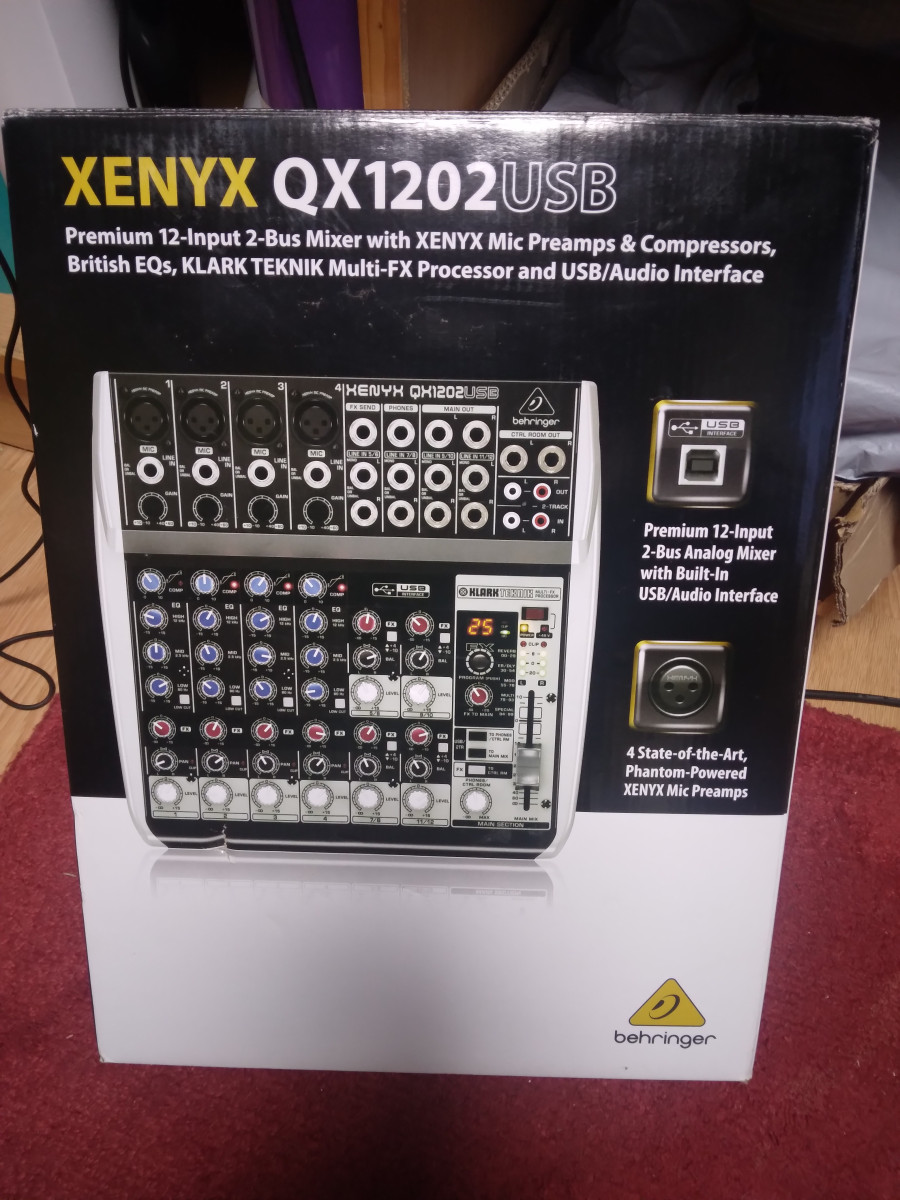 Vendo mesa de mezclas e interfaz de audio BEHRINGER XENYX QX1202USB en perfecto estado solo se ha probado, no tiene ni 2 horas de uso. Con instrucciones y caja original.