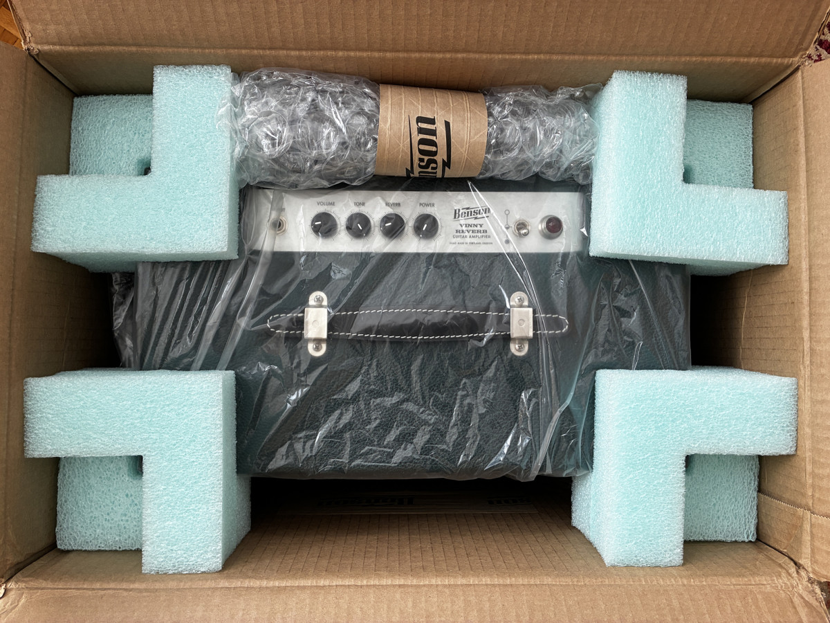 Benson Vinny Reverb recibido en Noviembre de 2024, después de meses en la lista de espera. Creo que debe de ser el único que hay en España fabricado a 220, porque justo unos días más tarde de recibirlo colgaron en la web una nota en la que dejaban de aceptar envíos a Europa. Así que en este mismo momento, las opciones para hacerse con uno con voltaje Europeo son muy pocas por no decir ninguna. El amplificador es increíble, pequeñito pero matón. Artistas como: Blake Mills, Josh Smith (Bonamassa), Ryan Lerman, Mason Stoops, Vavá... etc están encantados. Tiene power scaling lo que te permite tocar en casa sin molestar a tus vecinos pero exprimiendo todo el carácter del ampli.
