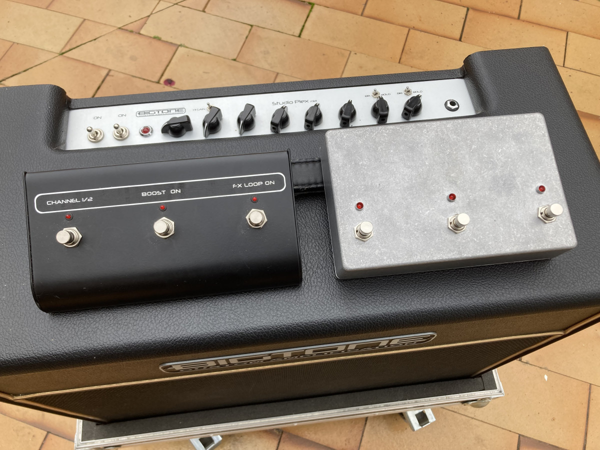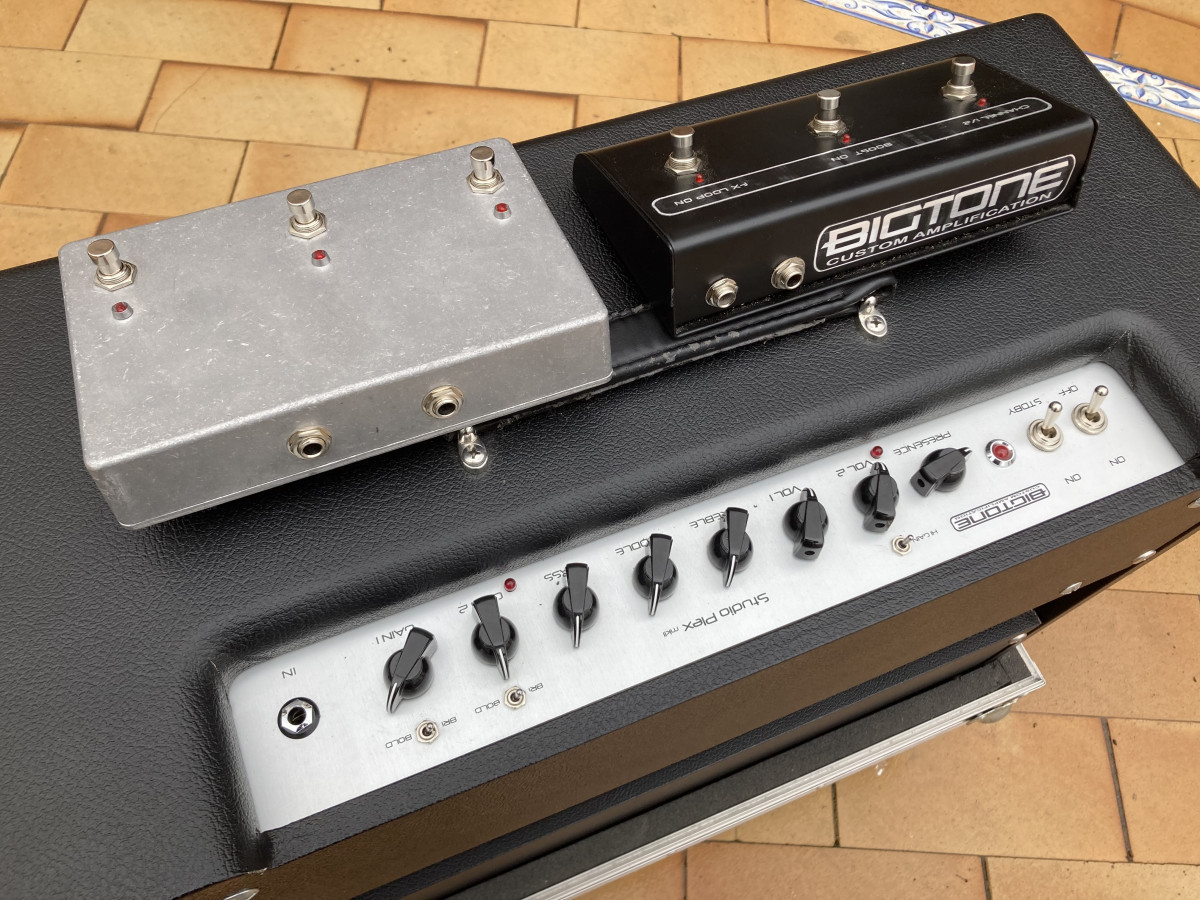 Vendo Bigtone Studio Plex MK II combo de 50w 1x12 en perfecto estado de funcionamiento, con flightcase a medida, con su pedalera de 3 pulsadores mas otra pedalera construida a medida extra, todo en perfecto estado, siempre metido en su flightcase.