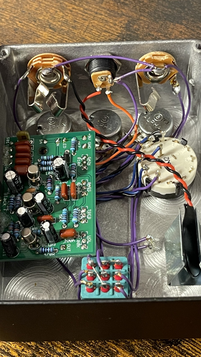 Fuzz que va desde overdrive a fuzz, con un control de 6 posiciones para distintas eqs de graves. Sonido añejo en una gran construcción y componentes.