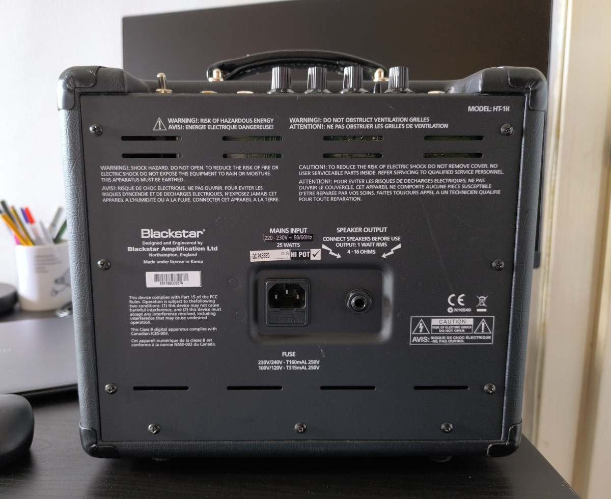 Vendo este blackstar ht1r. Buen estado, algun toque del uso, ni se aprecian en foto. Le cambié los botones de los potenciómetros por unos Fender. Los originales no se ven nada y estos tienen números, además de que me parecen estéticamente más bonitos.