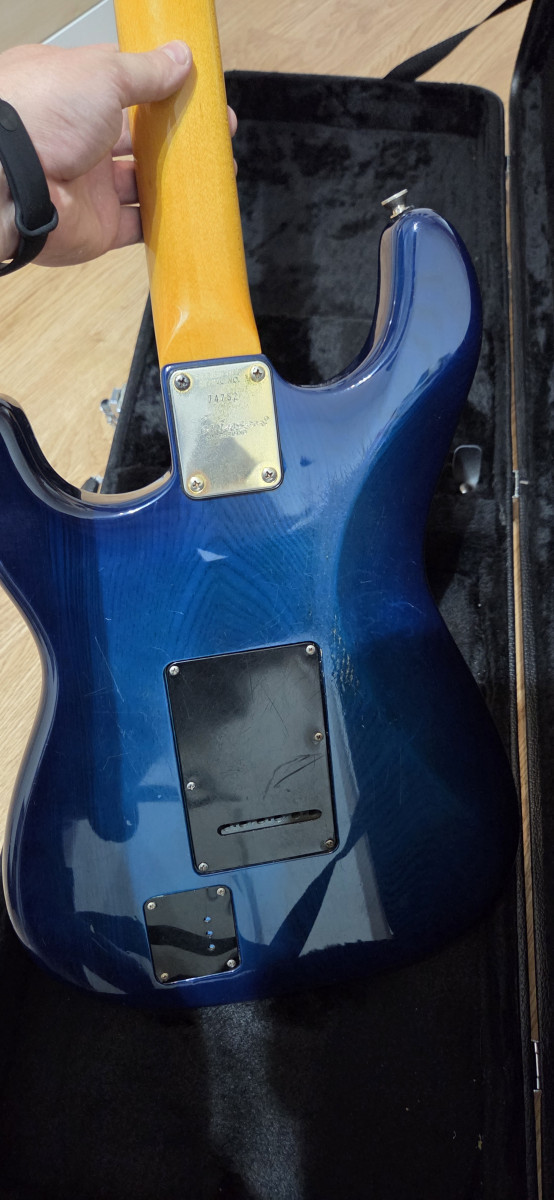 Vendo guitarra Blade R2 (Made in Japan, finales 80/principios 90), una joya de nivel profesional. Destaca por su cuerpo de Fresno Japonés (Sen Ash) en azul translúcido y su gran versatilidad.