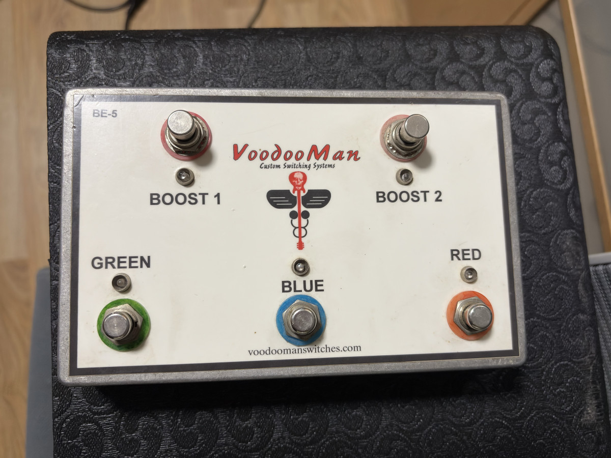 Vendo uno de mis amplificadores favoritos puesto que estoy en pleno proceso de reducción de material. Se encuentra en perfecto estado (salvo algún roce que se puede observar en las fotos) y con un cambio de válvulas realizado por Phakkito hará unos 3 años. Le puso unas Tung-Sol que le sentaron genial (y lo que costaron conseguirlas...) Desde entonces uso muy esporádico en estudio. El pedal no es original, es uno que se hizo para este modelo, en concreto de la marca Voodoo Man. El Tolex es el espectacular Black Comet. Se cambiaron los Knobs al color de sus canales (rojo, verde, azul) para que pudieran ser fácilmente configurados.