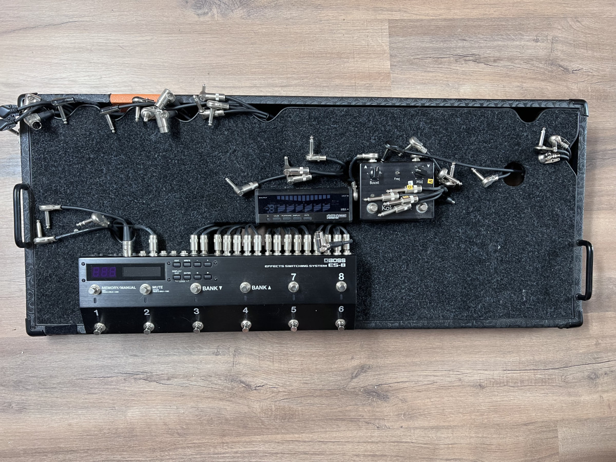Si quieres la base junto con el cableado y el flight case a medida (es un muerto) añádele 200€ y te llevas todo lo que ves en la foto menos el afinador y el Suhr KokoBoost (Solo en cables y conectores debe haber 400€).
