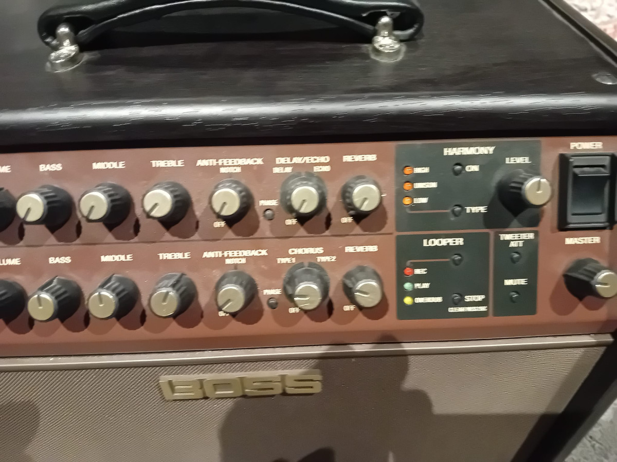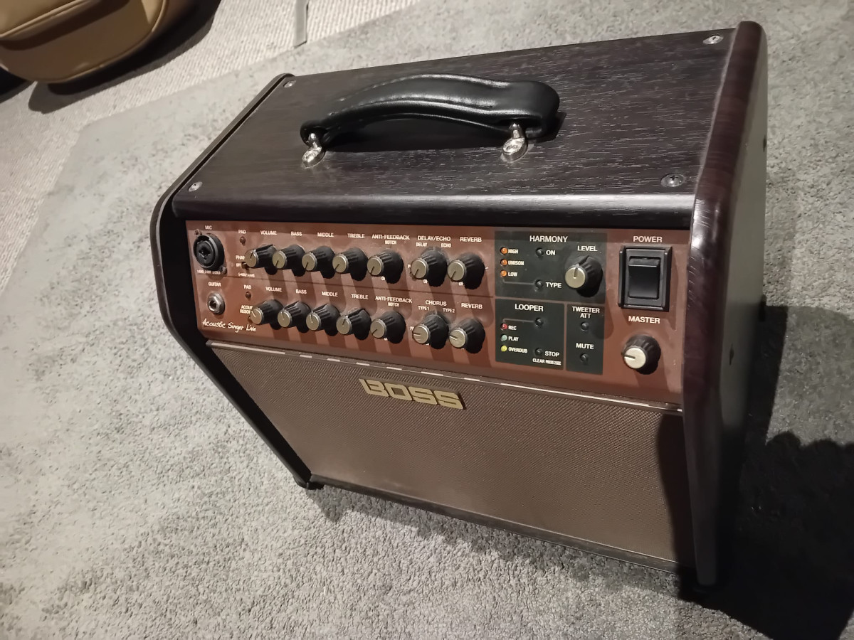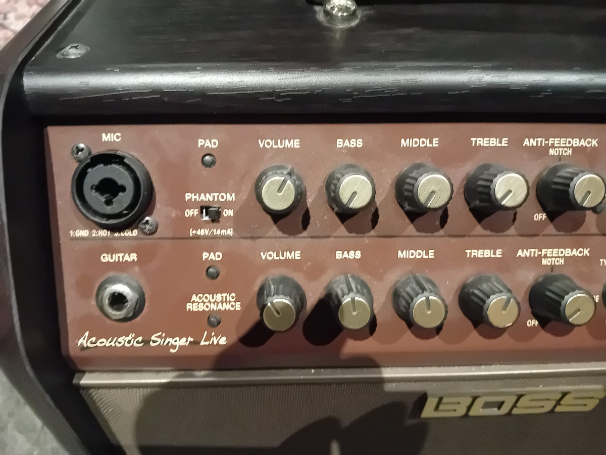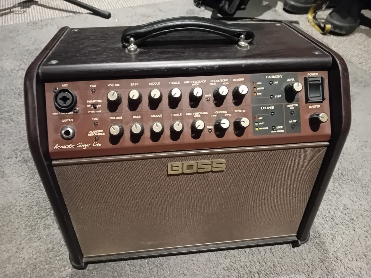 Boss ACS Acoustic Singer Live. El amplificador está perfecto. Lo he utilizado en muy pocos ensayos.