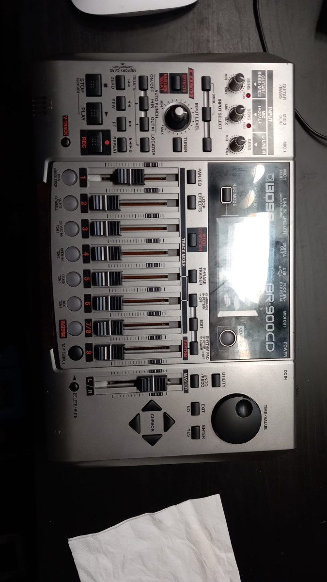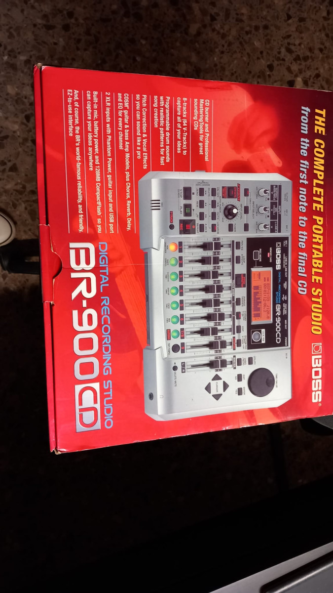 El BR-900CD el estudio de ensueño portátil del músico. Es resistente al camino, divertido de usar, y funciona mucho más allá de su clase de peso. Esta confiable grabadora digital todo en uno destaca por sus efectos profesionales, generador de patrones de batería realista, kit de herramientas de corrección vocal y masterización, salida digital y grabadora de CD interna. No importa dónde se encuentre en su estudio casero o en la carretera, todo lo que necesita es un BR-900CD, y puede escribir, grabar, editar, mezclar, dominar y grabar un CD pulido completo en cualquier lugar, en cualquier momento. Kit de herramientas de masterización y quemador de CD incorporado, 8 pistas de reproducción simultánea, 2 pistas de grabación simultánea con 8 pistas en V (64 V-Tracks en total) 2 entradas XLR con alimentación fantasma, más entradas 1/4 y RCA, y corrección de tono digital, coro, retardo, reverberación, ecualizador y otros efectos de calidad BOSS Generador de batería programable con 2 94 patrones, más Función de carga de tono para ritmos personalizados Graba directamente en Compact Flash (tarjeta de 128 MB incluida; graba hasta 624 minutos con tarjeta opcional de 1 GB) Grabar deirect al puerto USB CD-R/RW para copia de seguridad de datos en la computadora, además de importar/exportar archivos WAV Funciona con baterías o alimentación de CA. Lo mejor con el mismo funcionamiento confiable y ultra amigable que el popular BR-8 de BOSS. 64, el BRP -900CD da tres grandes pasos hacia adelante al aumentar el número de faders del panel frontal de cuatro a ocho y agregar una unidad de CD-RW incorporada y Corrección de tono al conjunto de funciones. El BR-900CD es compatible con tarjetas CompactFlash de hasta 1 GB de capacidad, lo que proporciona hasta 624 minutos de tiempo de grabación (modo estándar) en una sola toma. Incluso con todas estas nuevas características, la huella de la unidad sigue siendo pequeña para facilitar el viaje.Stellar Studio EffectsMostrando orgullosamente el logotipo de BOSS, el BR-900CD ofrece una línea de efectos de calidad que son dignos del nombre legendario. Además de los estándares probados por el tiempo (reverb, EQ, coro, retardo), encontrará efectos adicionales de calidad profesional, como corrección de tono vocal, armonía inteligente,