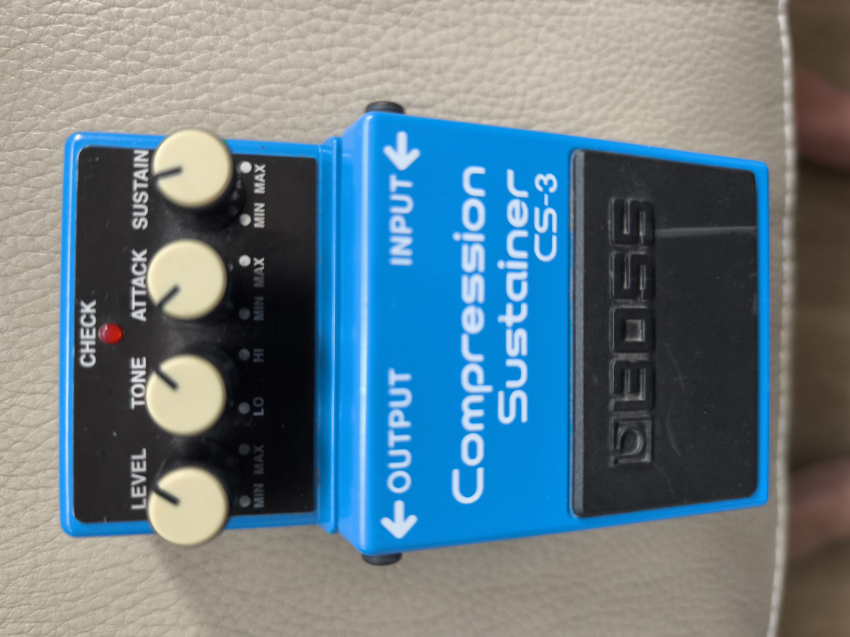 Pedal de efectos que uniformiza el sonido de la guitarra o bajo al atenuar picos altos y aumentar señales bajas, proporcionando un sustain suave y prolongado sin distorsión. Sus controles son: Level (volumen de salida), Tone (graves/agudos), Attack (tiempo de respuesta de la compresión) y Sustain (duración del efecto). Es versátil para arpegios, solos, ritmos y para conseguir un sonido más lleno.