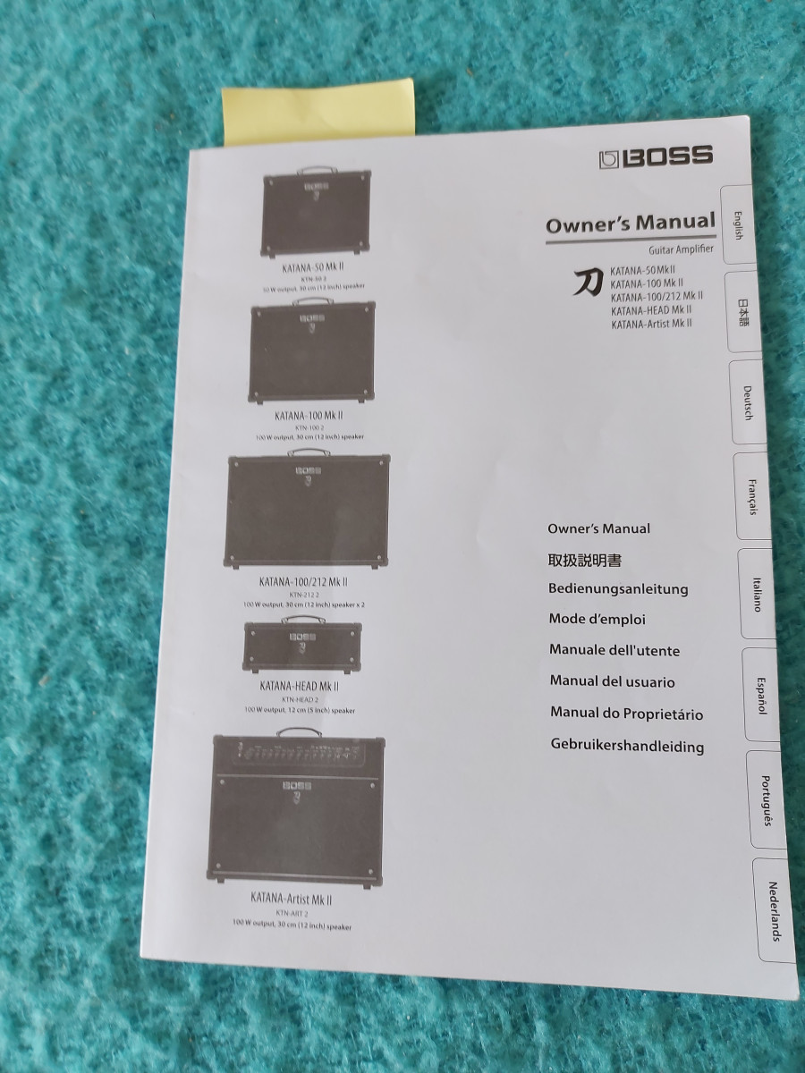 Boss Katana 50 MK2 , con Pedal Boss FS 5L, Funda protectora , manual de usuario en Español , y embalaje original .