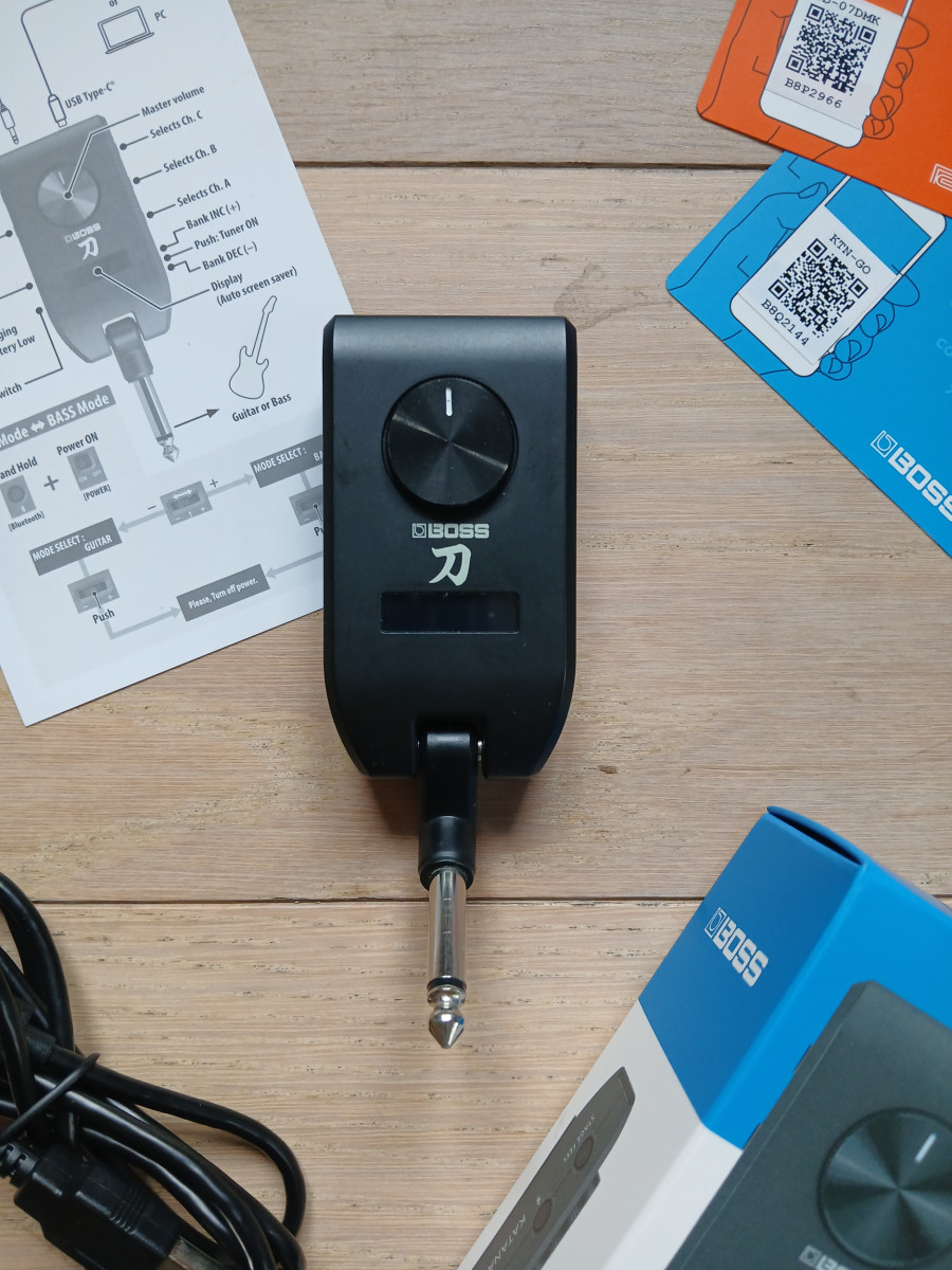 Amplificador portátil para guitarra y bajo Boss Katana Go. Como nuevo, sin apenas uso. Incluye caja original, manual y cable USB.