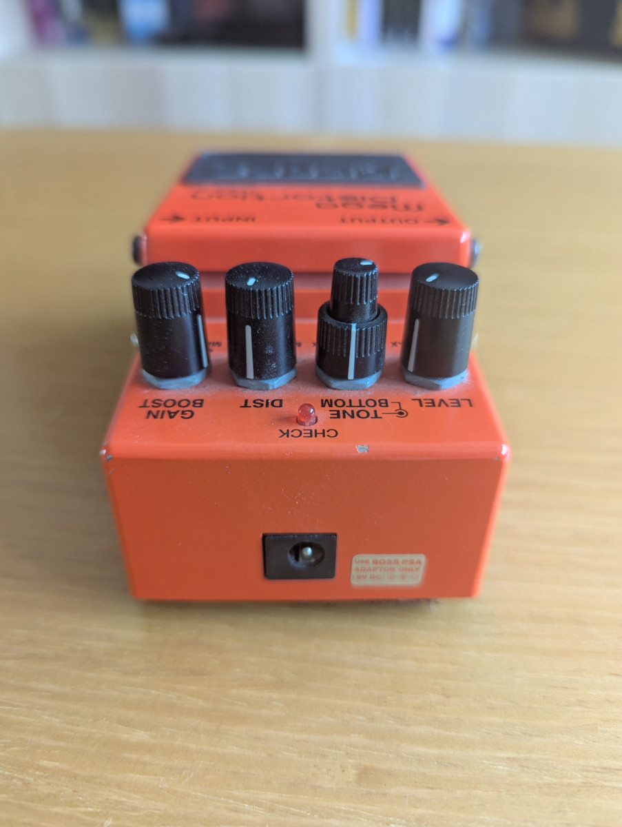 Pedal de distorsión Boss MD-2. Tiene alguna marca de uso pequeña, pero el estado general es muy bueno y funciona perfectamente. No conservo la caja original ni incluyo fuente de alimentación, es sólo el pedal.