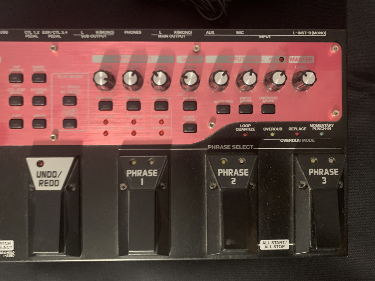 5 canales estéreo phrase simultáneos, con controles dedicados; amplio rango de “Input FX” y “Track FX” para el procesamiento de loops; modo de reproducción independiente y función de sincronización de tempo; 99 memorias de “phrase,” cada una conteniendo cinco canales con configuraciones personalizadas de efectos/reproducción.