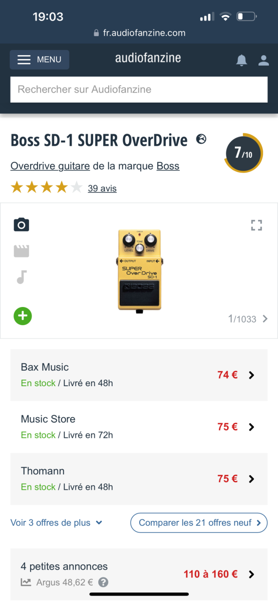 Es la versión analógica, de allí el precio. Viene sin caja pero funciona de lujo, solo que yo utilizo el Overdrive de mi ampli, paso ya de coleccionar…