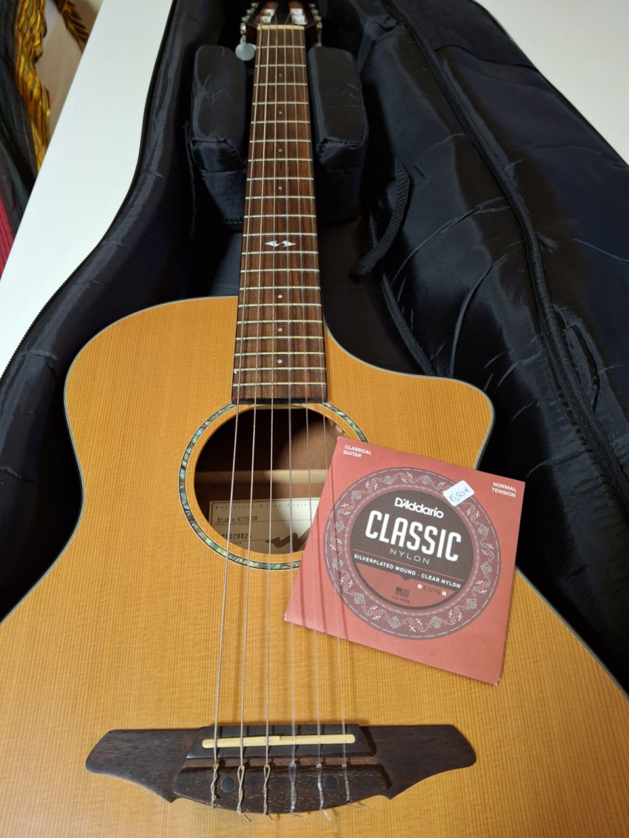 Breedlove Studio N250/CR electroacústica de cuerdas de nylon, en excelentes condiciones tanto funcionales como estéticas. La compré nueva y solo la he utilizado en casa. Es una estupenda “crossover” de nylon, con un mástil cómodo de perfil slim-taper, ligeramente más fino que el de una clásica tradicional. La guitarra se entrega con la funda original Breedlove e incluiré un juego nuevo de cuerdas D’Addario.