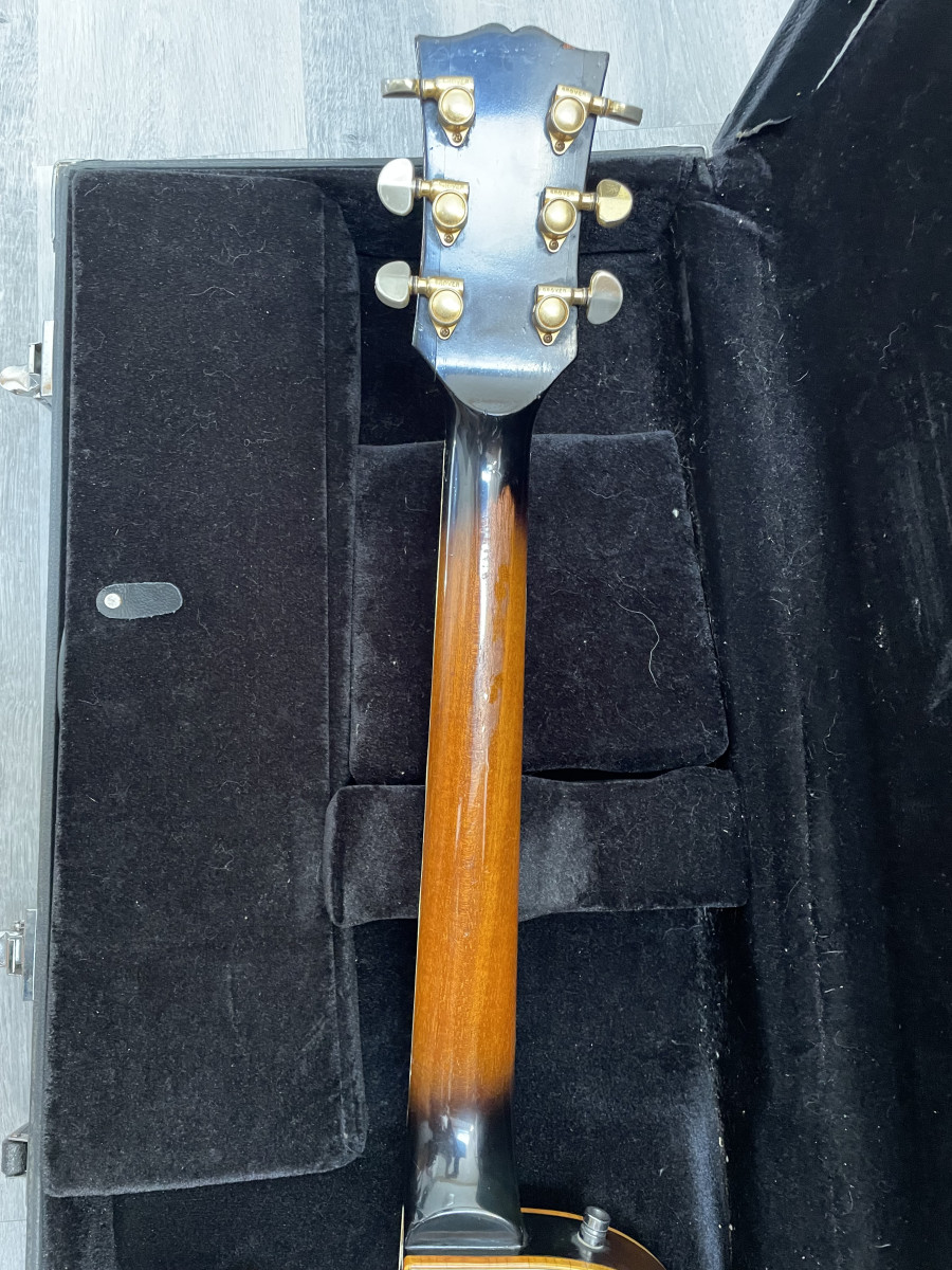 la guitarra tiene muchos años y no esta perfecta ,algun toque,algun binding con defecto ,sin golpes fuertes y pala en perfecto estado ,pero eso con años en su espalda,he pensado en restaurarla alguna vez pero si luciese nueva no tendria ese mojo