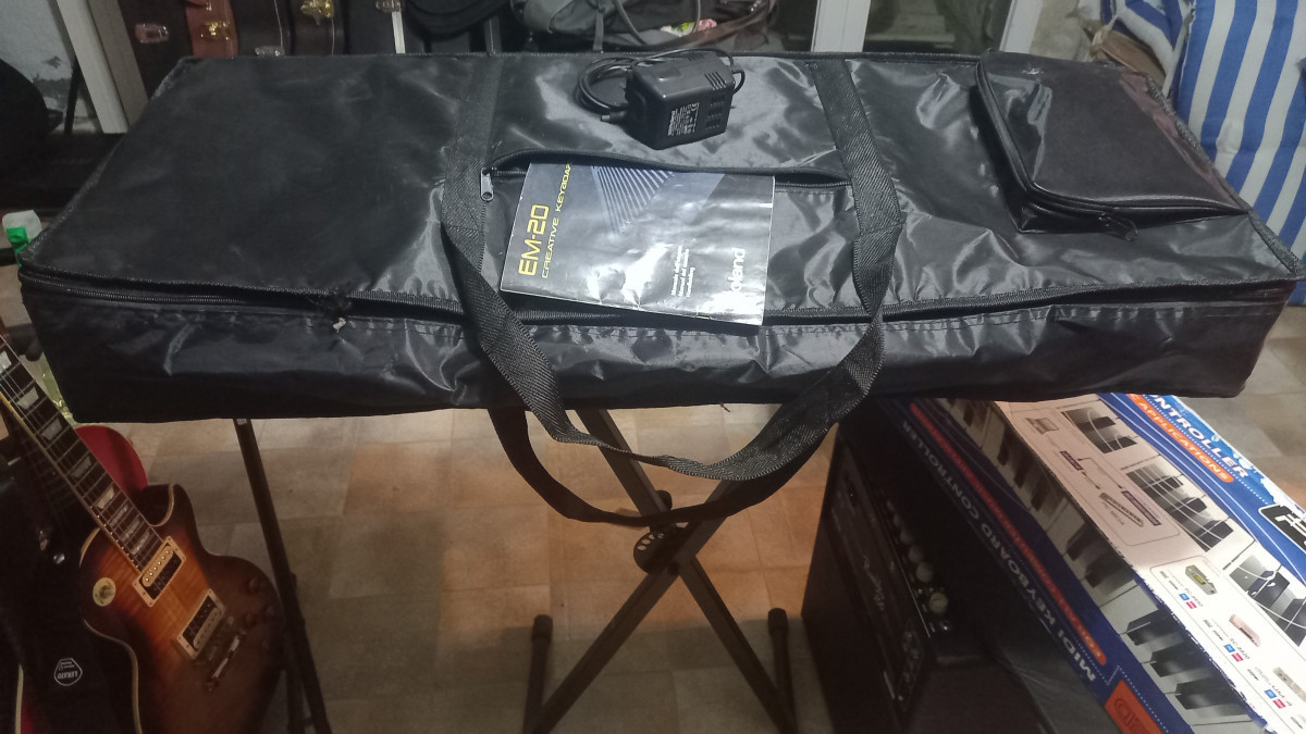 La venta incluye funda de transporte, patucas, fuente de alimentación, atril y libro de instrucciones