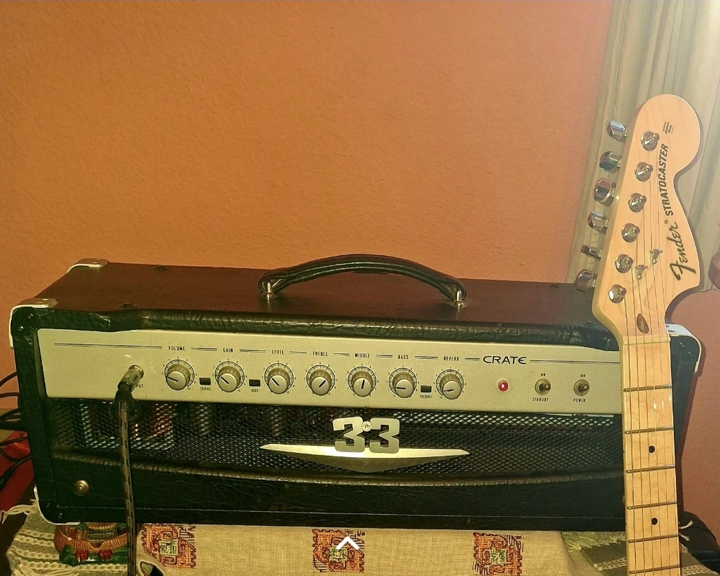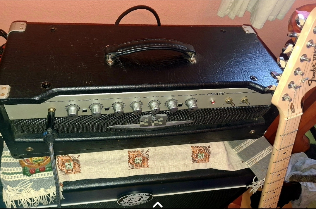 Ampli cabezal Crate V33, valvulas 4 X EL84. Saliendo del servicio de técnico ( con recibo y deralles), también montando el un ventilador dentro. EL84 normalmente tiran mucho calor.el Reverb es Alucinante. Ampli muy bueno para blues,jazz, rock, pero no es para metal.