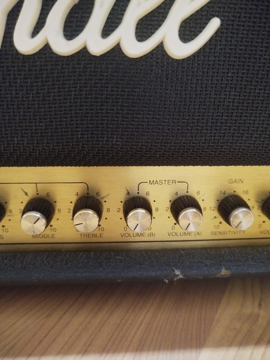 Cabezal Marshall jcm900 100w Hi Gain Master volume MKlll. En perfecto estado de funcionamiento, todas las valvulas cambiadas, limpieza de potenciometros. Solo ha estado en mi mano desde que lo compre nuevo en 1992. Lo he usado para directos, ensayos, grabaciones..., o sea que ha estado revisado cada cierto tiempo. Los unicos desperfectos son esteticos ya que tiene mas de 30 años. No hago envios, solo entrego en mano.