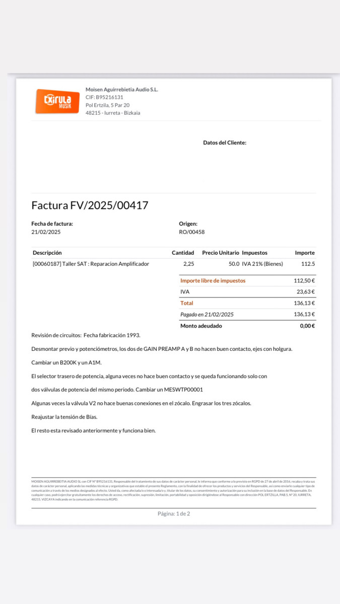 Regalo el pedal de cambio de canal que habría que reparar ya que el cable no hace bien contacto.