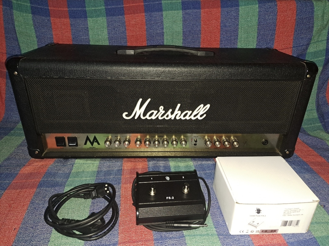 Marshall MA50H 50W All Valve Amplifier Head. Amplificador de válvulas con sonidazo Marshall sin ser tan pesado. Dos canales con secciones de control independiente. Una función de Boost en el canal Overdrive crea un pseudo tercer 'canal'