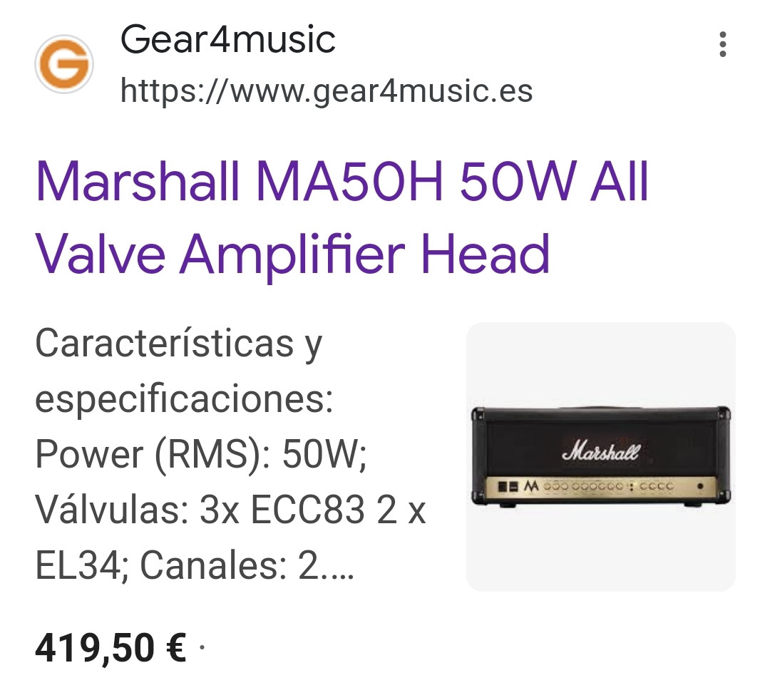 Cabezal Marshall MA50H 50W válvulas