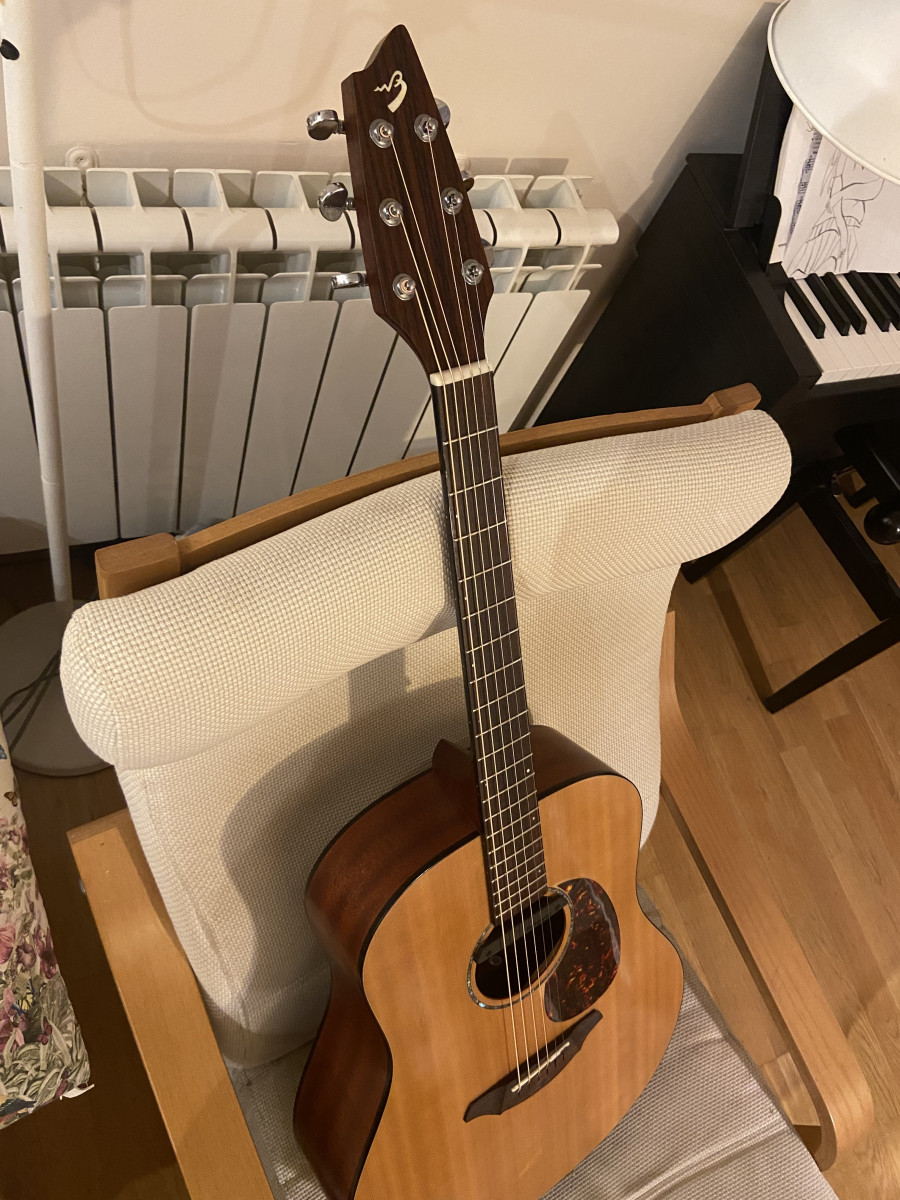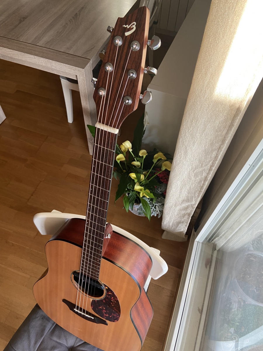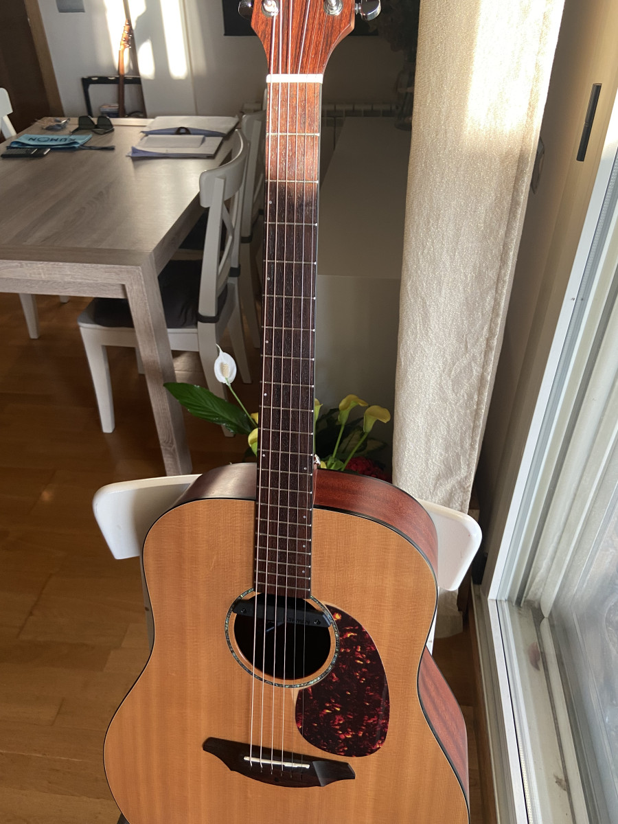 La guitarra es un instrumento cojonudo: suena y se toca como un instrumento de nivel, muy cómoda. No diré que es como la Furch, pero no se queda lejos, es una gran guitarra.