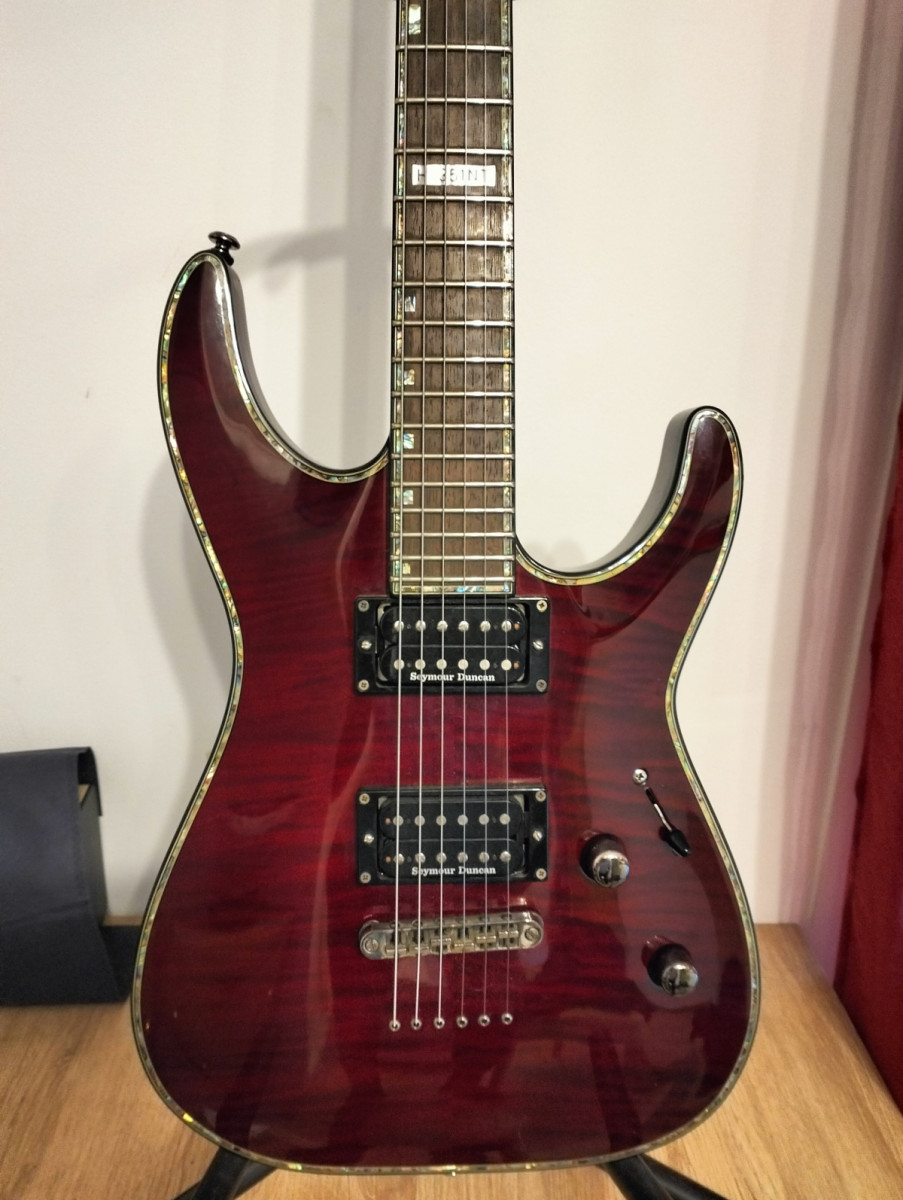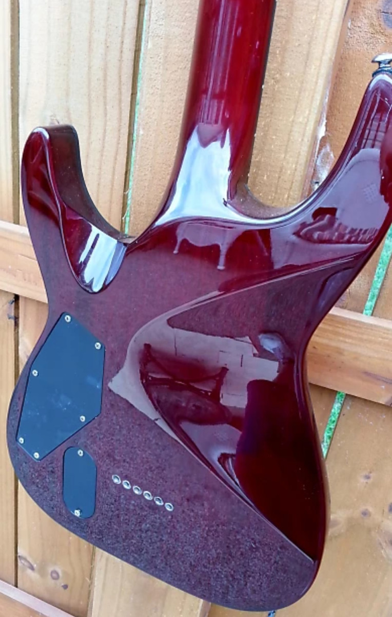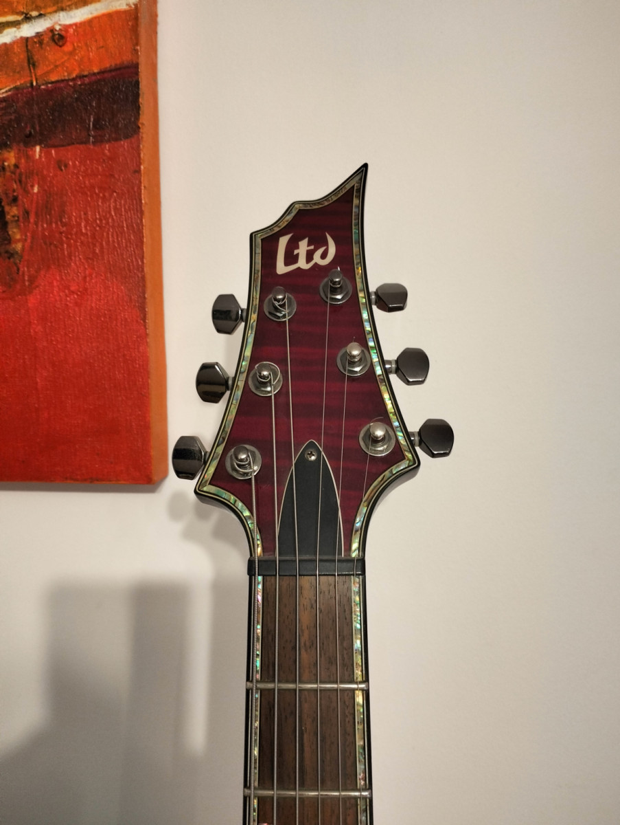 Ávalon en toda la guitarra muy rara cuerpo, mástil y pala. La guitarra más cómoda que he tenido, trae pintura conductiva,Ergonómica muy ligera,24 trastes,cuerdas através del cuerpo muchisimo sustain.mastil y cuerpo de caoba , diapasón de Palo rosa .