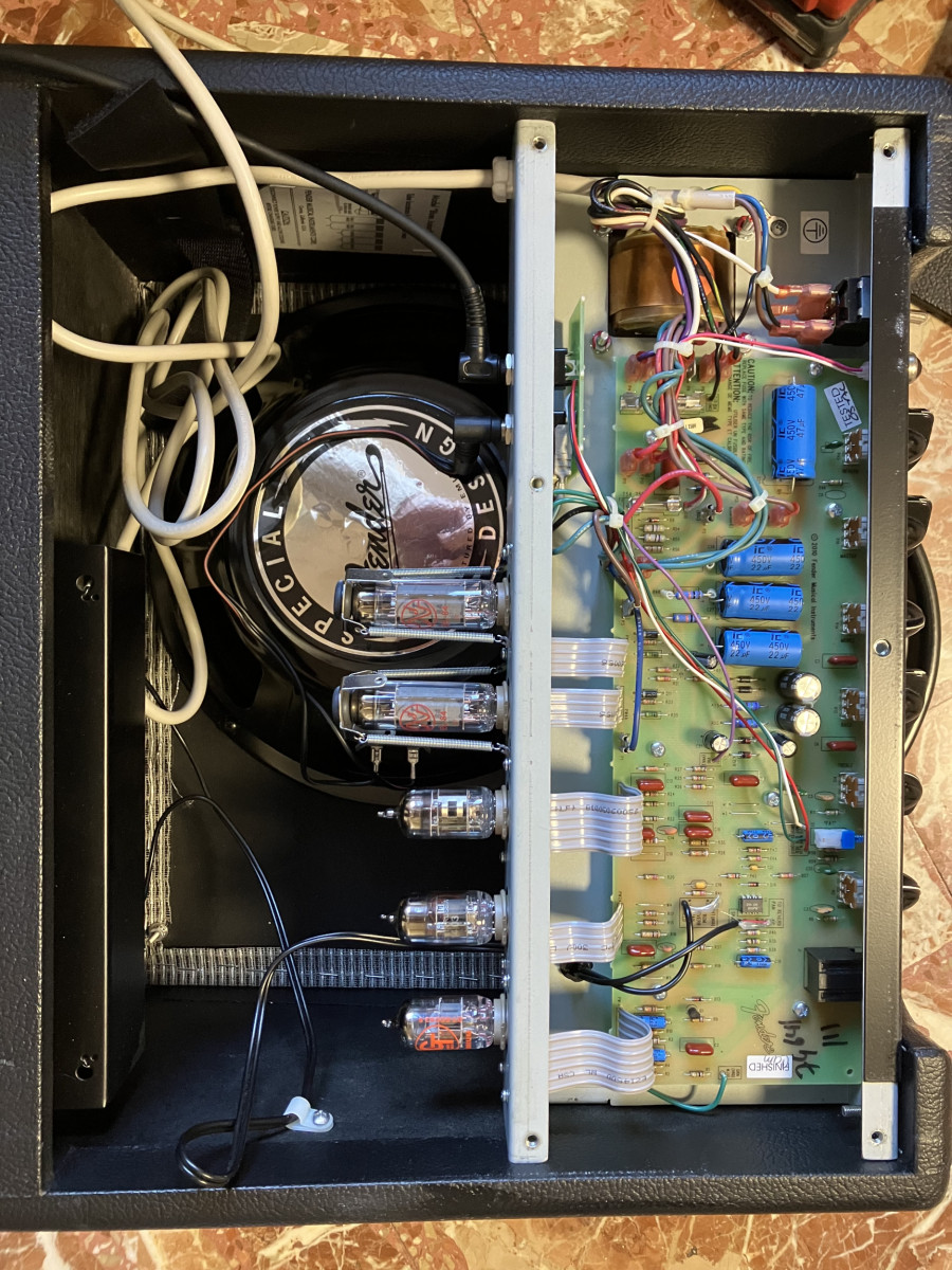 El amplificador está prácticamente nuevo, no tendrá ni 50 horas de uso en todos estos ańos y no ha salido nunca de casa. El cono del amplificador está sin usar, desde el primer día se utilizó con una pantalla externa. Lleva 2 válvulas JJ en potencia nuevas que le puse por capricho, no habrán sonado ni 10 horas, por lo demás, todo original. No tiene ni un roce.