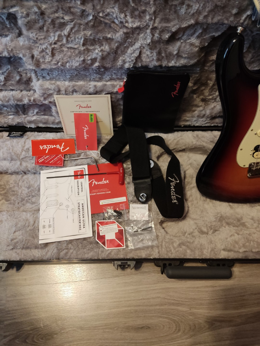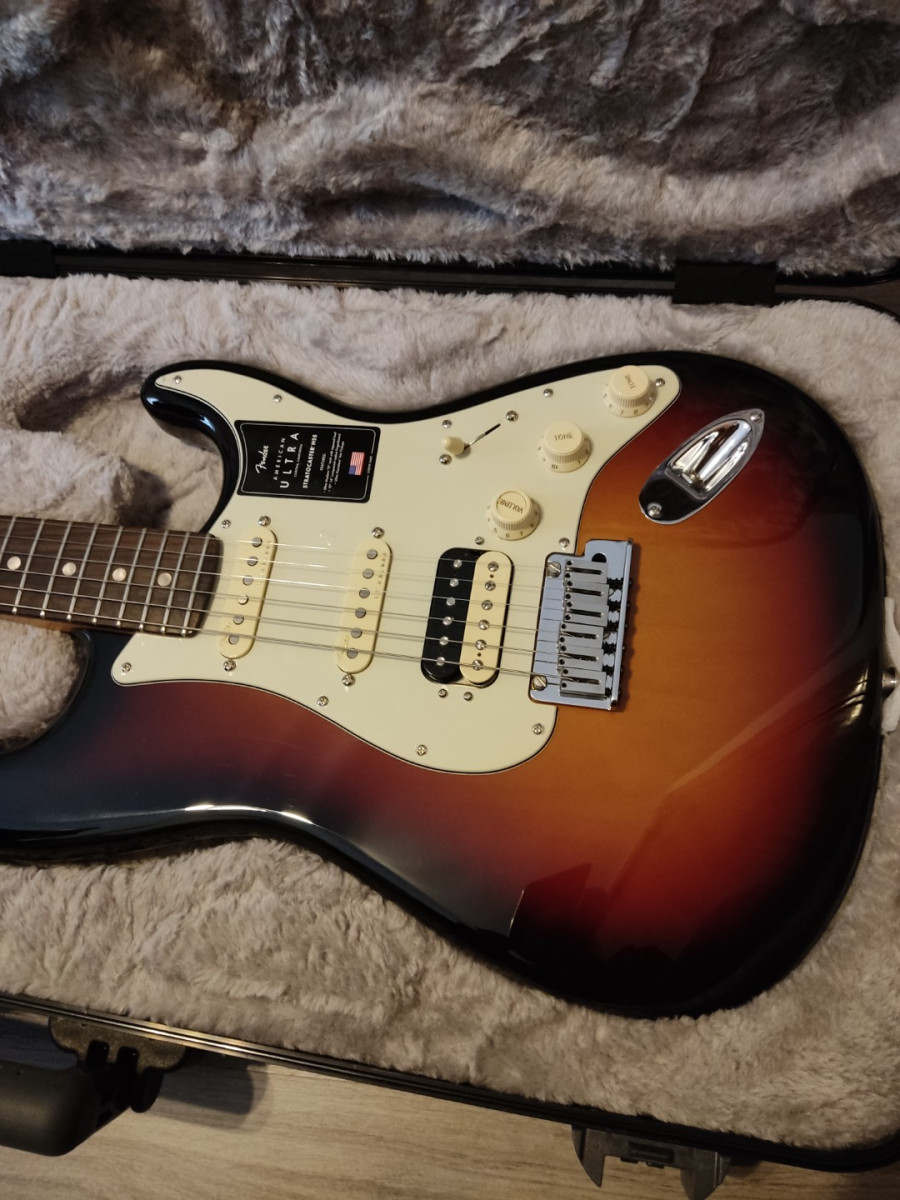 Cambiaría Fender Stratocaster American Ultra año 2021 por Telecaster American Ultra siempre que esté en perfecto estado sin ningún rasguño,y con su maleta y accesorios, tal como la que yo ofrezco