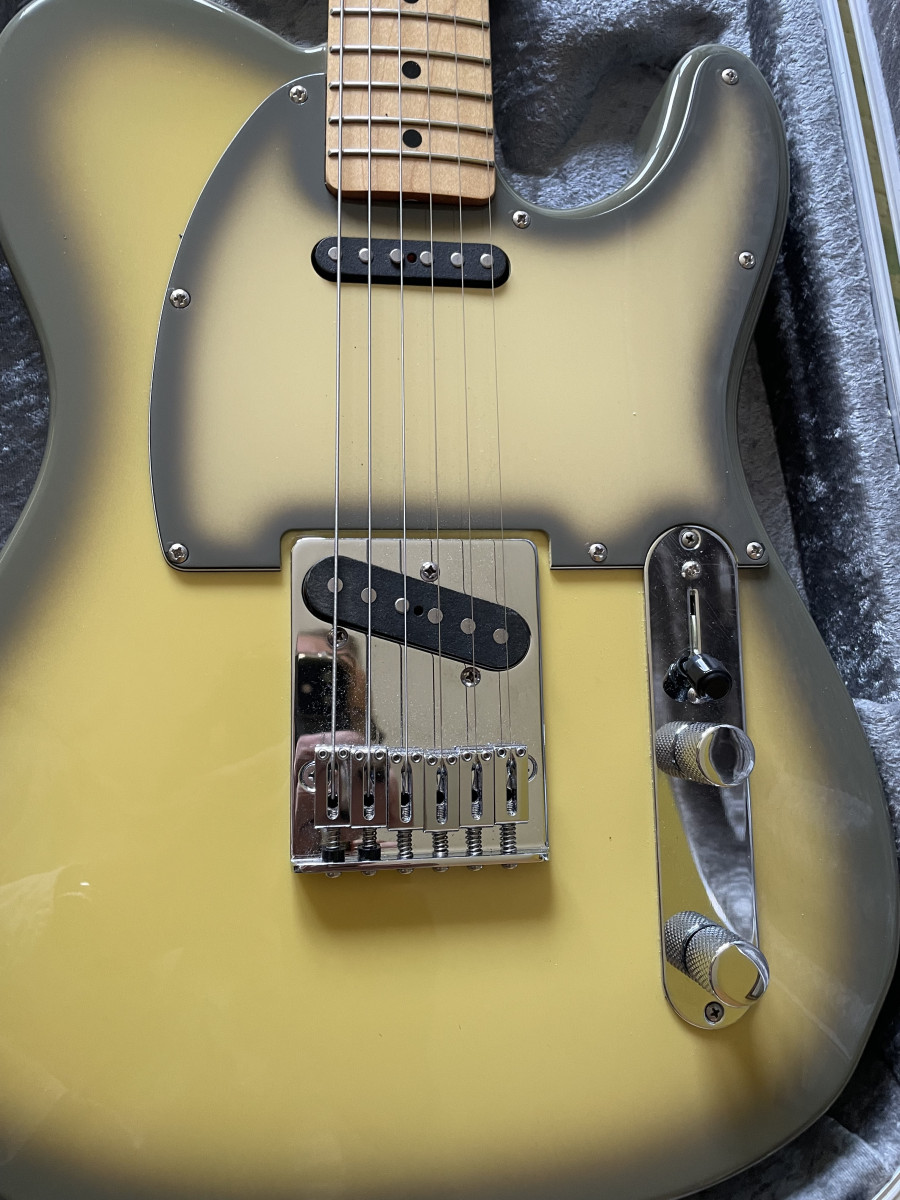 Cambio guitarra Fender telecaster antigua del 2003 con maleta tiene echas las siguientes mejoras apantallado en cobre electrónica de calidad y lleva un treble bleed y pastillas lindy fralin blues special todo echo por luthier profesional cambio por fender stratocsster diapasón de palo rosa ó telecaster y en perfecto estado como la mía para cambio la valoro 1700 euros ( no está en venta )