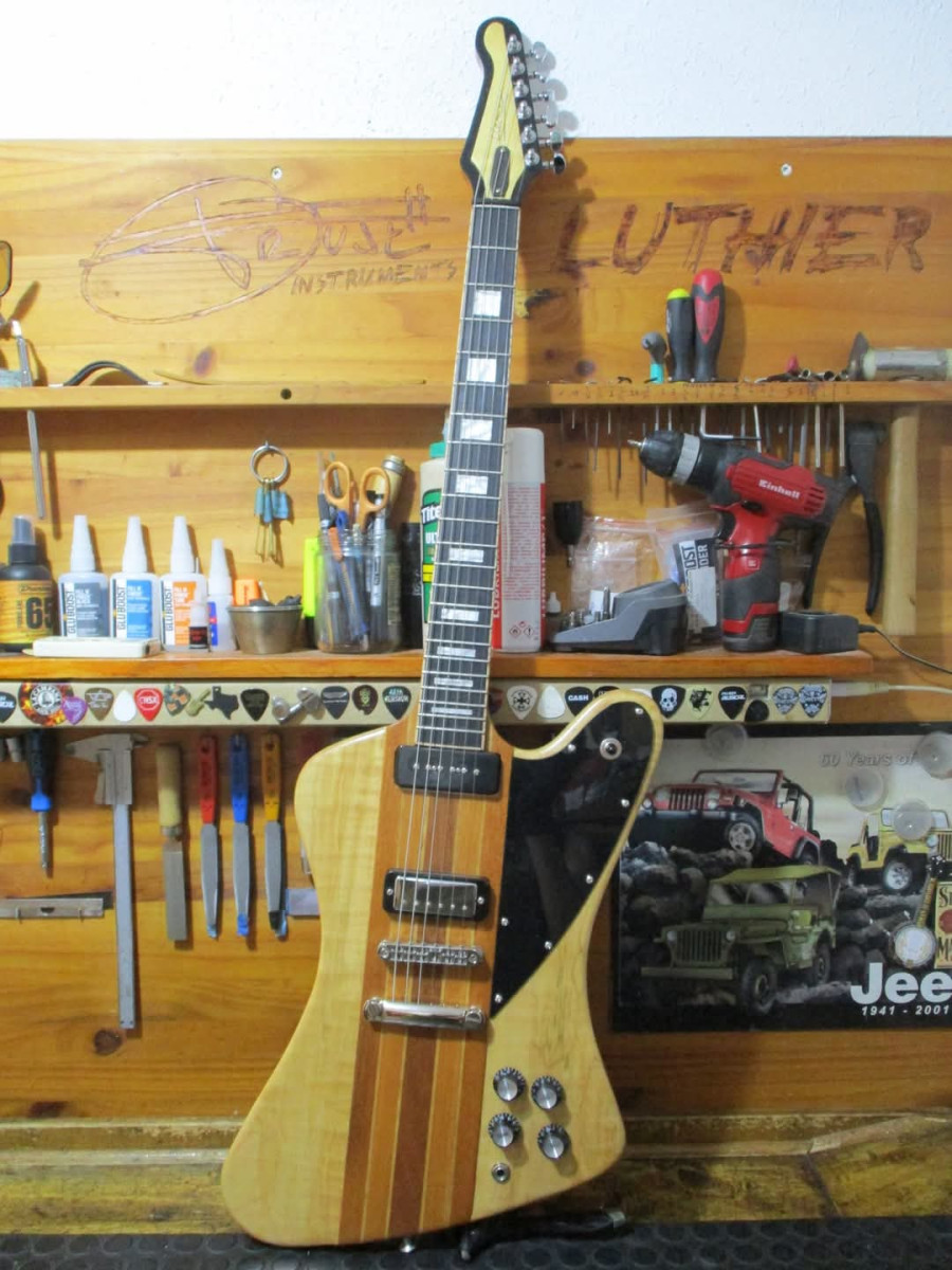guitarra tipo gibson firebird,hecha por el luthier ramon lleonart.Mastil de caoba con refuerzos de arce,cuerpo de caoba y tiras de arce intercaladas,tapa de arce del pantano,diapason ebano,pastilla p90 y minihumbucker,clavijeros grover,estuche rigido.cambio gibson les paul standard,gibson sg 61gibson lp junior,fender telecaster custom,fender stratocaster,prs,fender jazmmaster...guitarras de corte clasico.