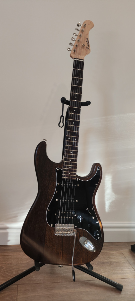 Lo compré nueva hace un par de años y la habré tocado unas 20 horas. No me hace click y prefiero otras guitarras. No tiene ningún defecto. Con funda.