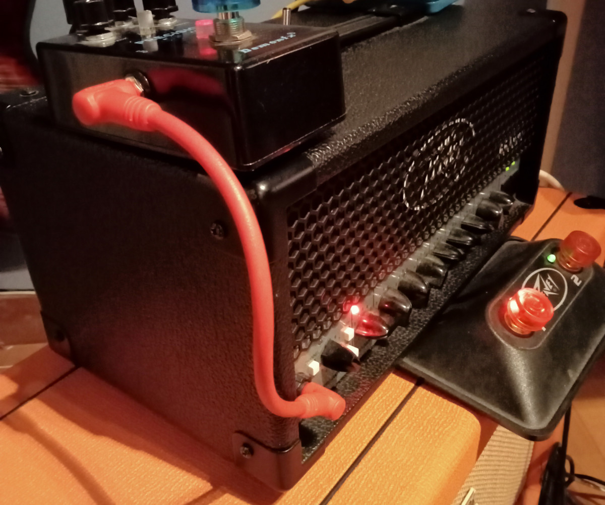 Incluye el pedal de cambio de canal y regalo un pedal con ir para enchufarlo directamente a monitores sin pantalla ya que tiene carga interna.Con eso y un overdrive Booster ( no incluido) con el gain bajito da una pegada tremenda