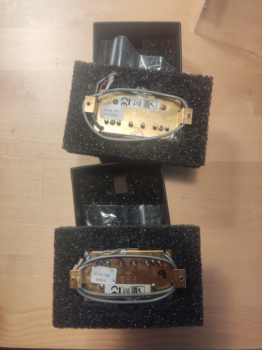 Muy buenas; Pues nada, que cambio mis Pickups nuevas, unas humbuckers prs 57/08 TM(caja níquel grabada), por las PRS 58/15 LT TCI HUMBUCKER también con caja.