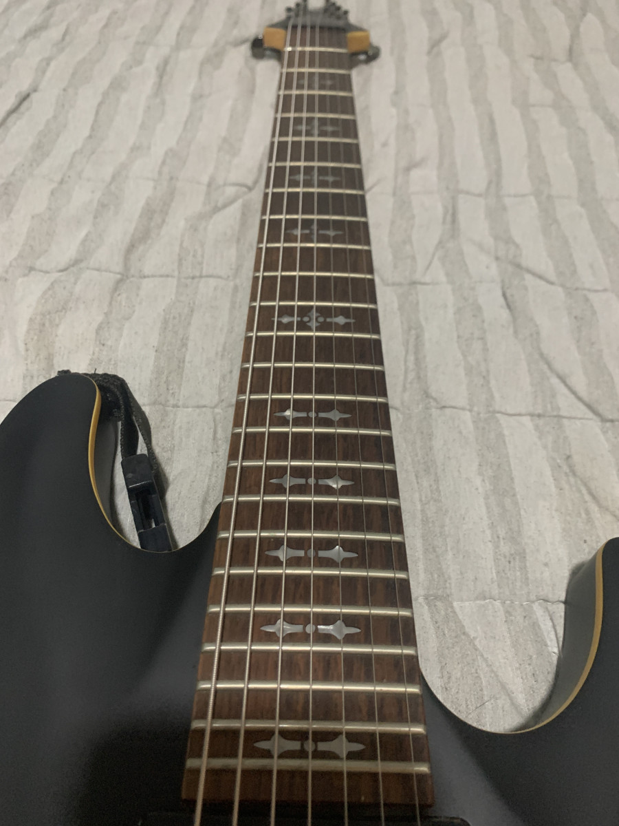 Cambio esta Schecter Demon 7 acabado negro satinado, las pastillas que traia de serie se le cambiaron por unas Seymour ducan blackouts (pastillas activas de alta ganancia). Tiene su uso como se ve en las ultimas imagenes, pero nada del otro mundo.